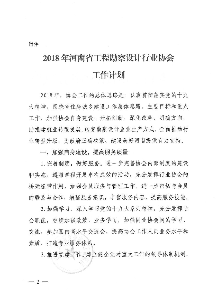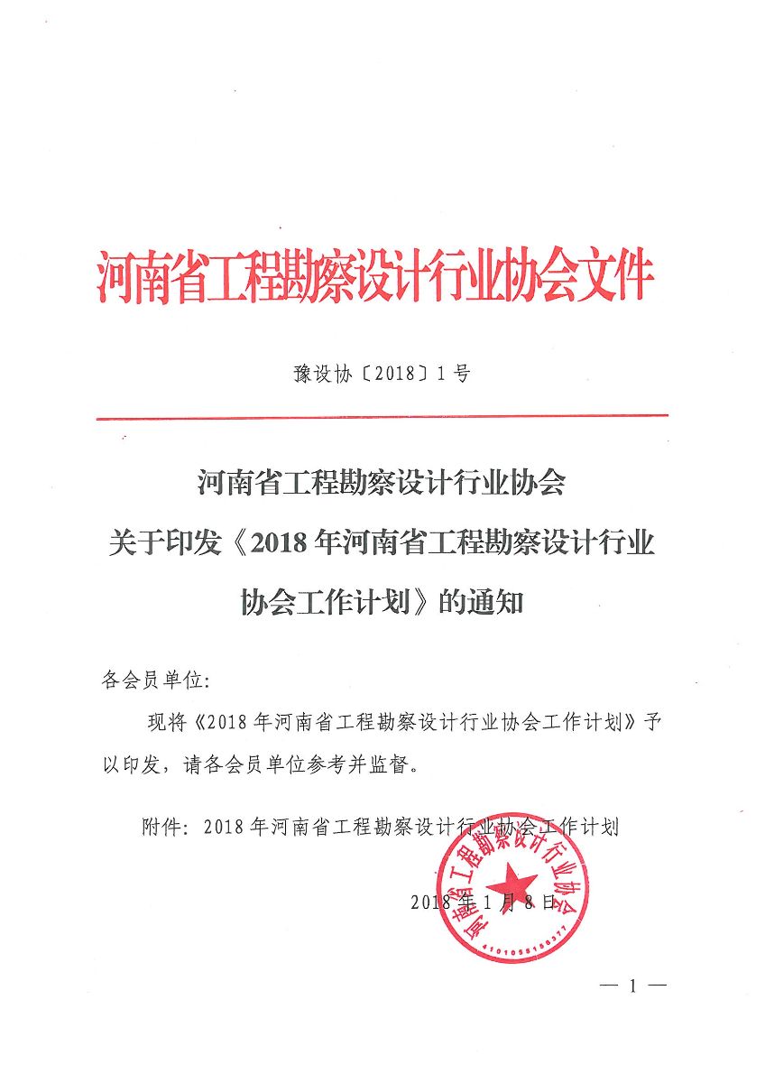 协会关于印发《2018年河南省工程勘察设计行业协会工作计划》的通知