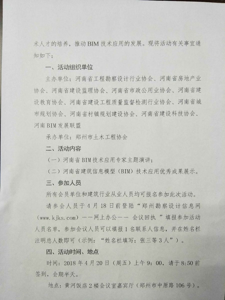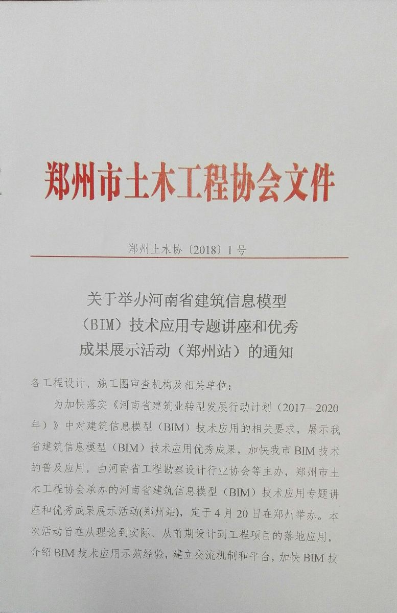 关于举办河南省建筑信息模型(BIM)技术应用专题讲座和优秀成果展示活动(郑州站)的通知