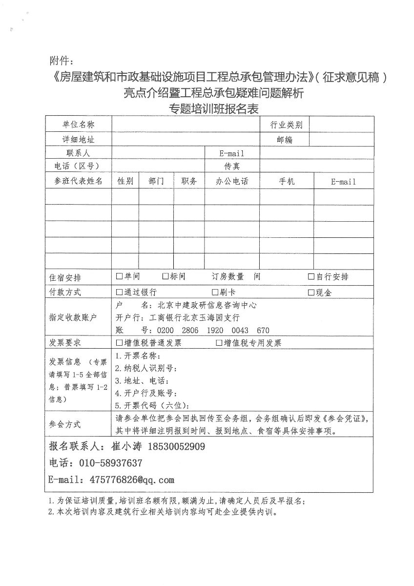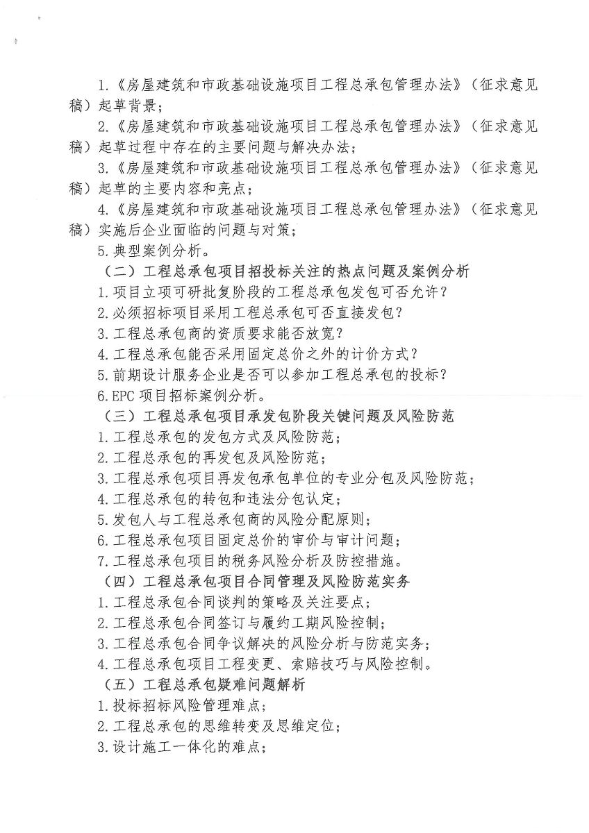 附件1:关于举办<房屋建筑和市政基础项目工程总承包管理办法>(征求意见稿)亮点介绍暨工程总承包疑难问题解析专题培训通知