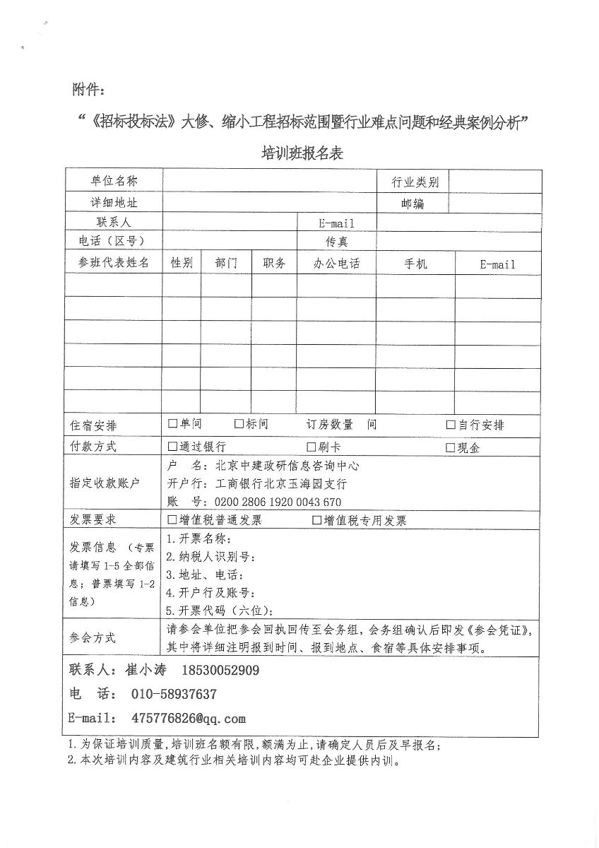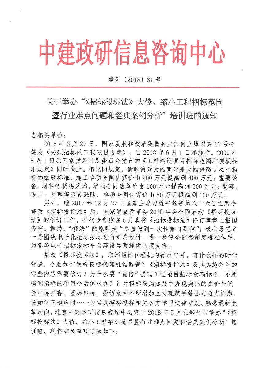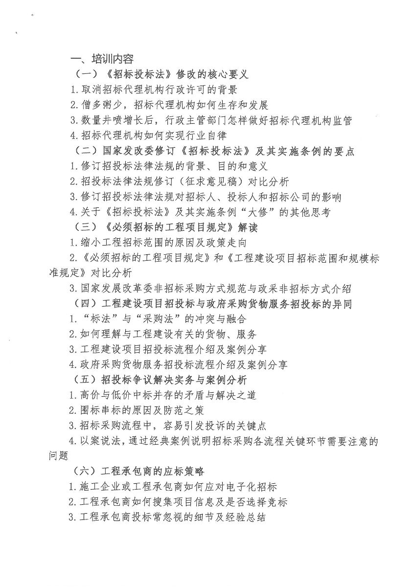 附件2:关于举办“<招标投标法>大修、缩小工程招标范围暨行业难点问题和经典案例分析”培训班的通知
