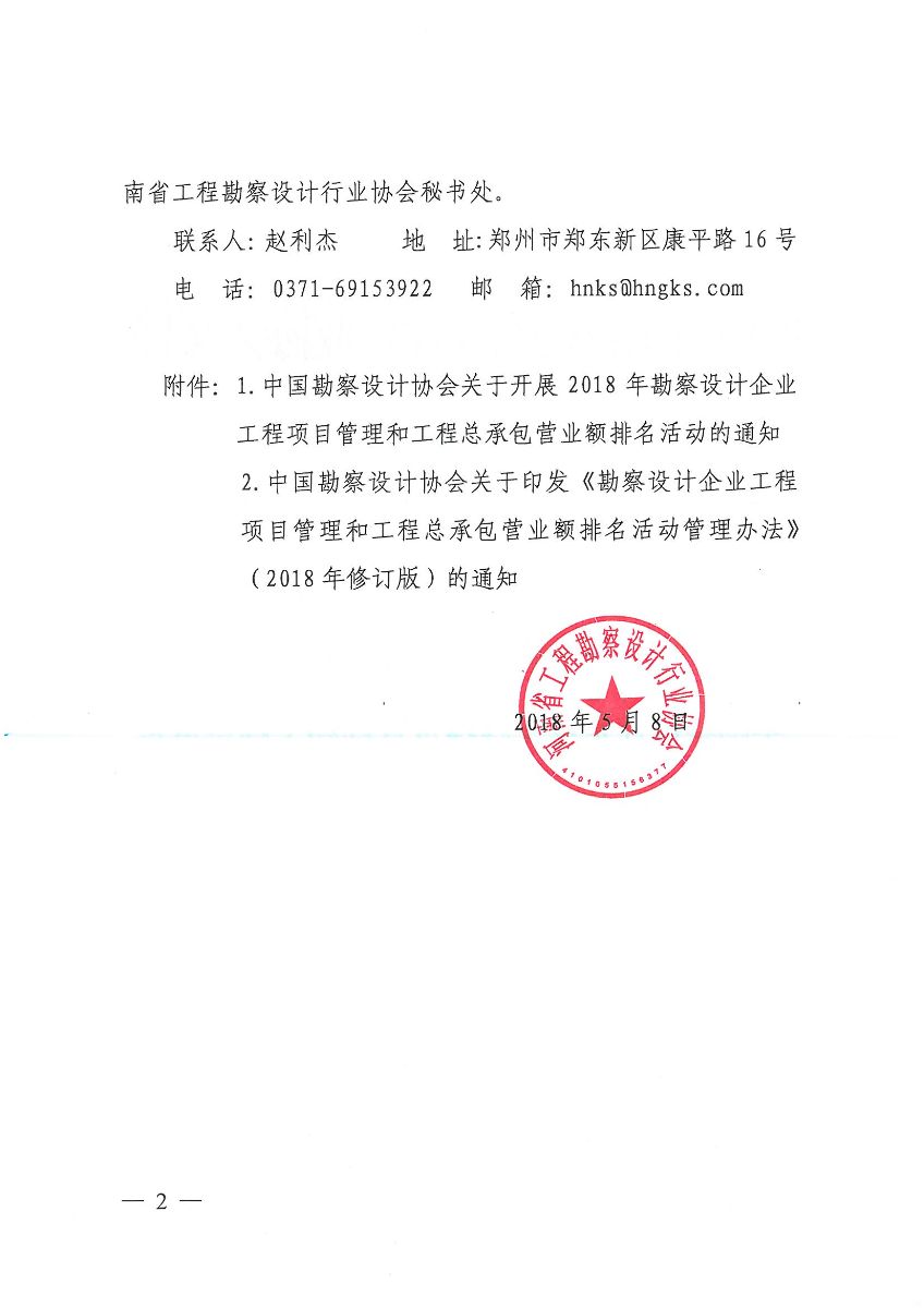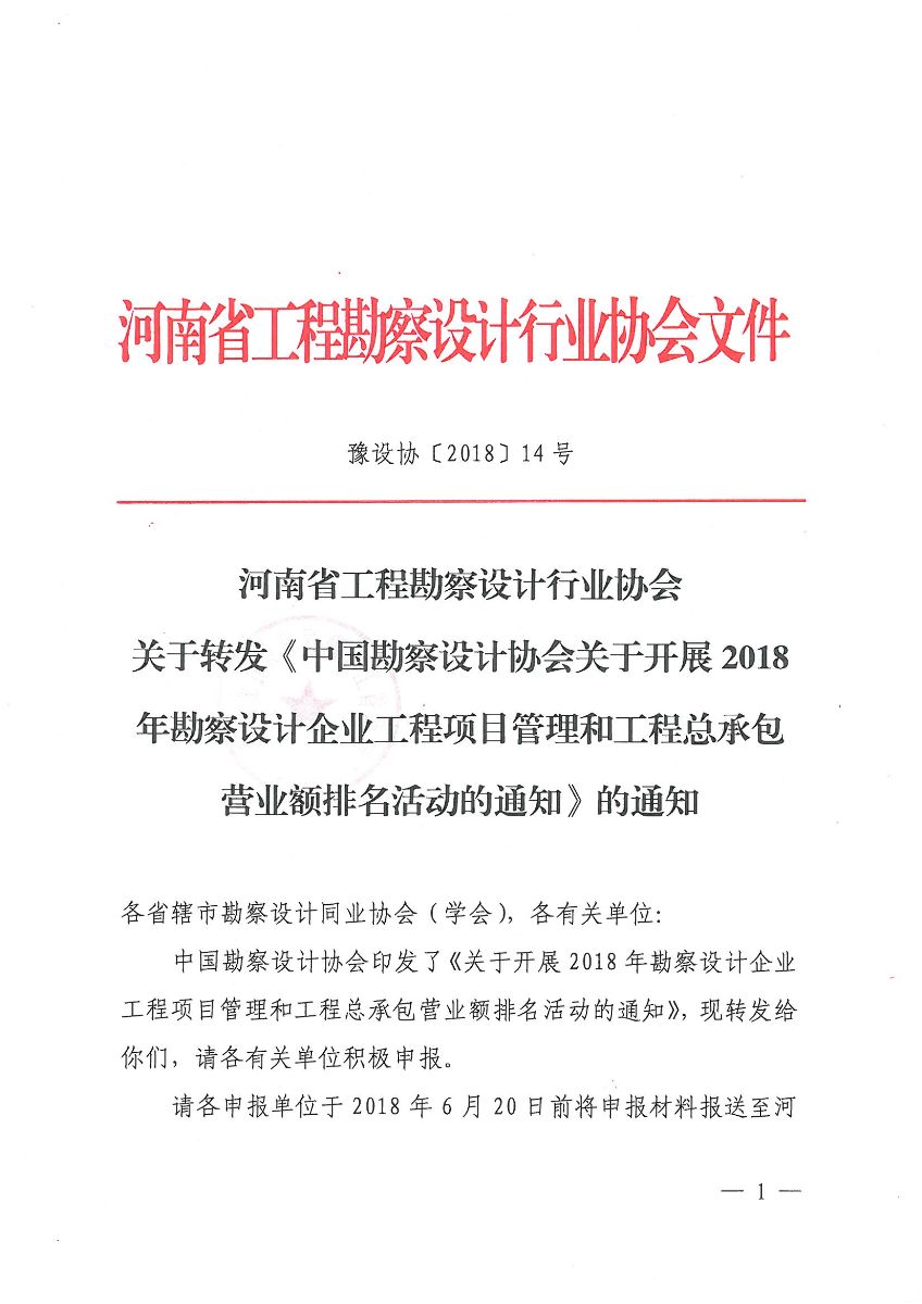 协会关于转发《中国勘察设计协会关于开展2018年勘察设计企业工程项目管理和工程总承包营业额排名活动的通知》的通知