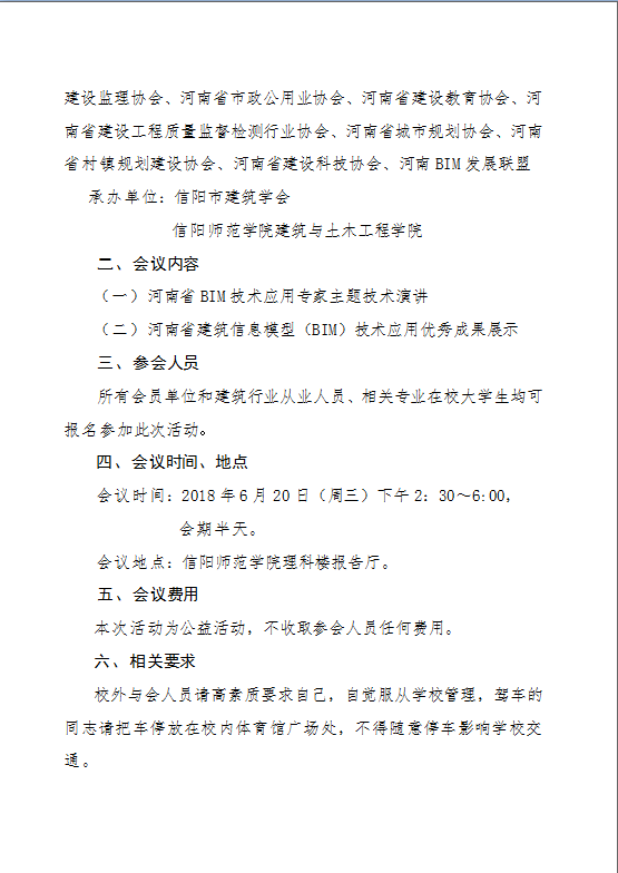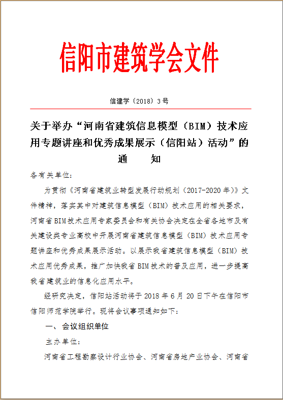 关于举办“河南省建筑信息模型(BIM)技术应用专题讲座和优秀成果展示(信阳站)活动”的通知