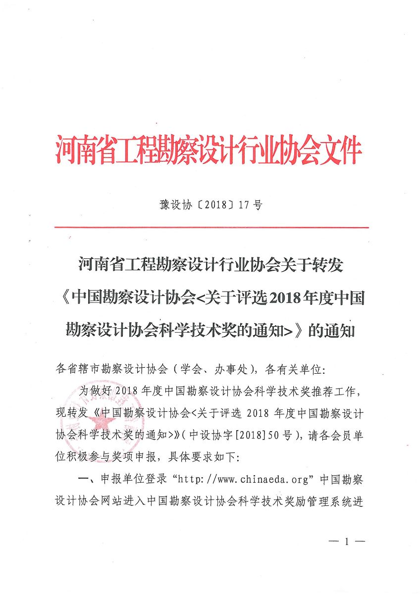 协会关于转发《中国勘察设计协会<关于评选2018年度中国勘察设计协会科学技术奖的通知>》的通知