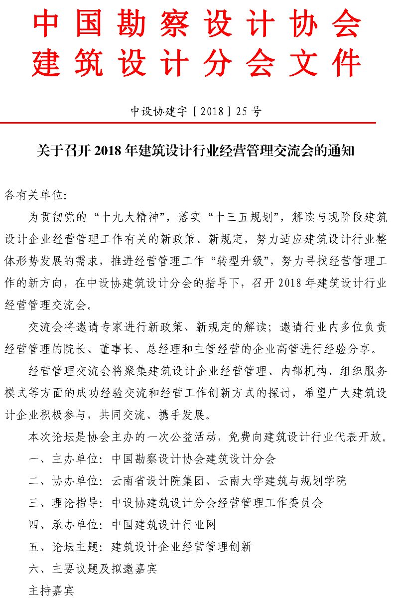 中勘协关于召开2018年建筑设计行业经营管理交流会的通知