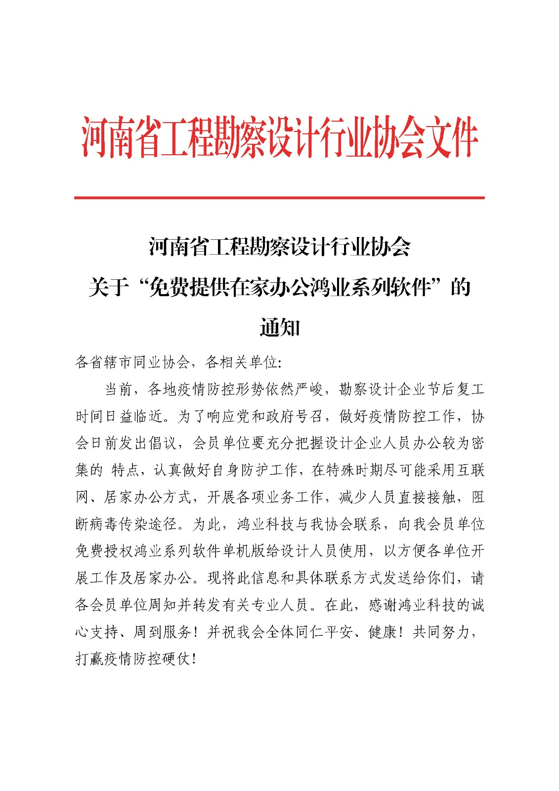 省协会关于“免费提供在家办公鸿业系列软件”的