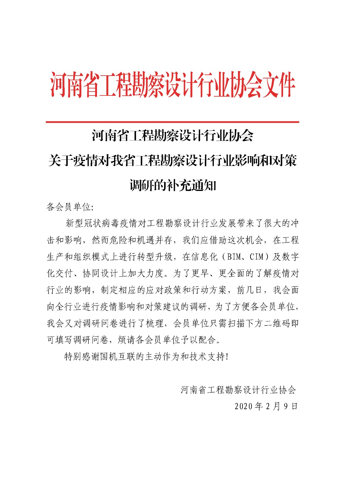 省协会关于疫情对我省工程勘察设计行业影响和对策调研的补充通知