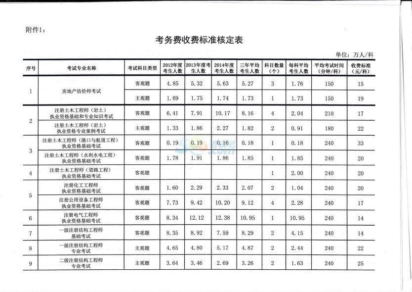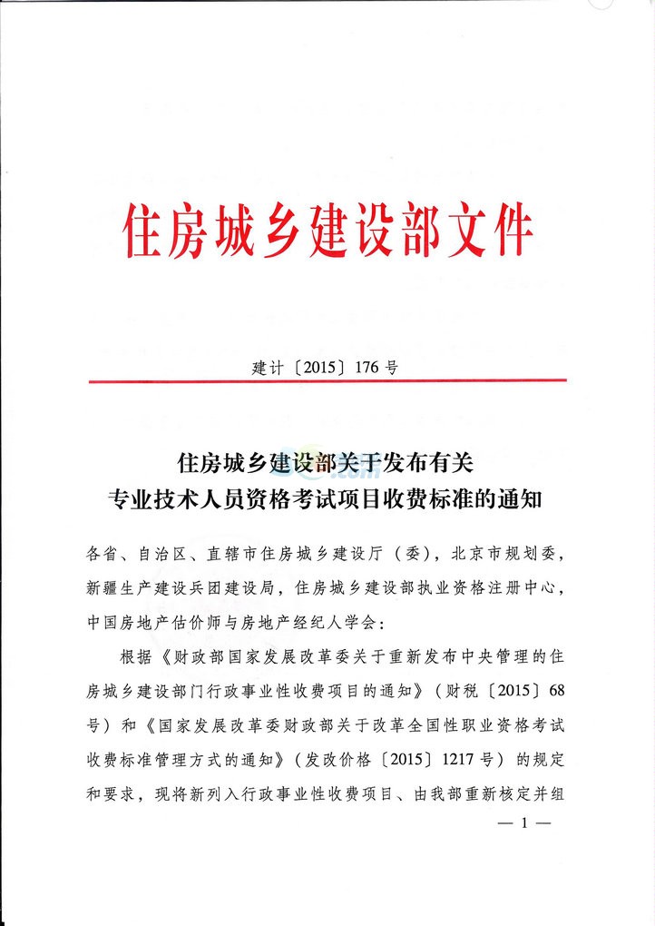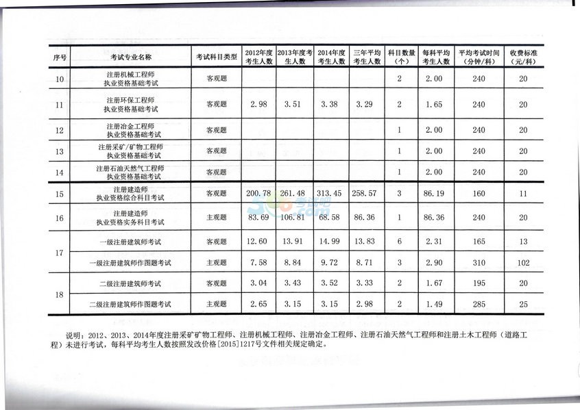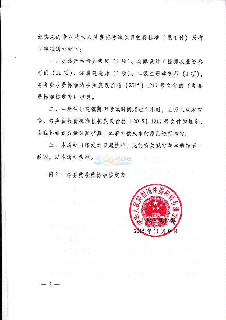 住房城乡建设部关于发布有关专业技术人员资格考试项目收费标准的通知