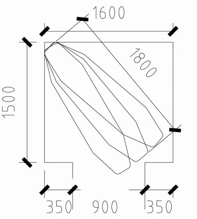 本次修改提出了可容纳担架电梯的建筑设计参数。这些参数的论证依据如下:《住宅可容纳担架电梯配置标准研究》课题组调查发现:各地急救中心使用的担架(车)没有统一标准,无法进入住宅电梯的主要原因是担架(车)尺度过大,不能直接作为住宅设计的参数。因此,必须先确定切实可行的急救担架最小参数。课题研究结论是,用于入宅急救的担架应以铲式担架尺寸为基础改型为削角担架。削角担架参数为:担架总尺寸:1.80m X 0.45m,距担架两端0.38m处开始向内收缩,两端把手缩至0.2m宽(如图),该尺寸满足人体最小平躺尺寸要求,覆盖了我国人体身高95%的范围。依据急救担架参数,确定了普通住宅可容纳担架电梯轿厢最小尺寸为1.50m×1.60m,即可利用对角线放置铲式担架车。1.50m×1.60m轿厢广泛适应国标1000kg型号,这样新建、改造住宅代价均较小,容易实现。同时要求电梯井道宽度要留有适当余地,净尺寸不小于2.20mX2.20m;电梯门洞开门净宽不小于0.90m,便于担架车出入。