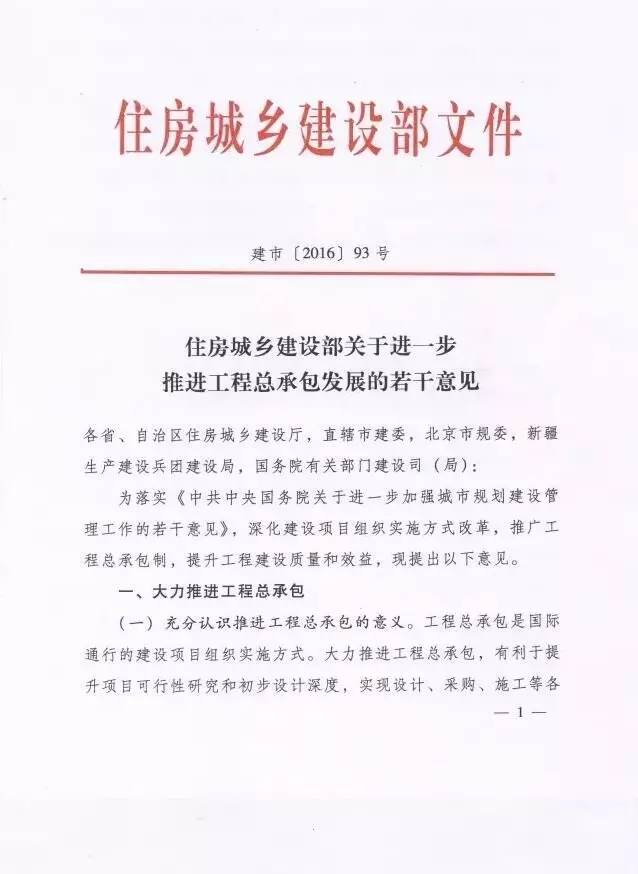 2016年5月20日,住建部发布了《关于进一步推进工程总承包发展的若干意见》(建市【2016】93号),《意见》肯定了工程总包项目模式的积极意义和重要性,倡导政府投资项目和装配式项目积极采用工程总承包模式,并从推动工程总承包行业发展方面提出了相关的优化建议(后附全文),以下是重点解读。