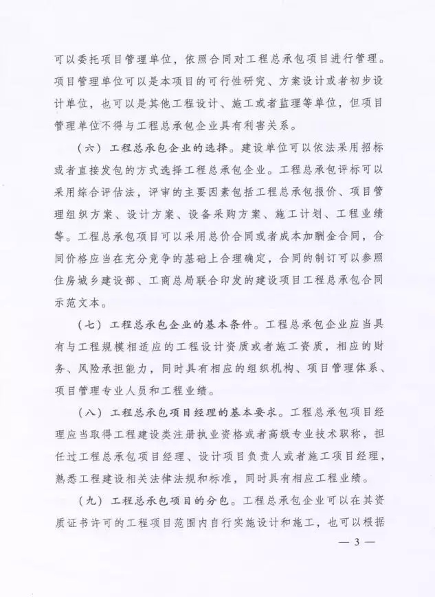 虽然之前就有规定明确:“工程总承包企业可以在其资质证书许可的工程项目范围内自行实施设计和施工”这次《意见》再次做出具体解读:仅具有设计资质的企业承接工程总承包项目时, 应当将工程总承包项目中的施工业务依法分包给具有相应施工资质的企业。仅具有施工资质的企业承接工程总承包项目时,应当将工程总承包项目中的设计业务依法分包给具有相应设计资质的企业。也就是说,今后在工程总承包投标中,可以不再强制要求设计和施工单位组成联合体了。