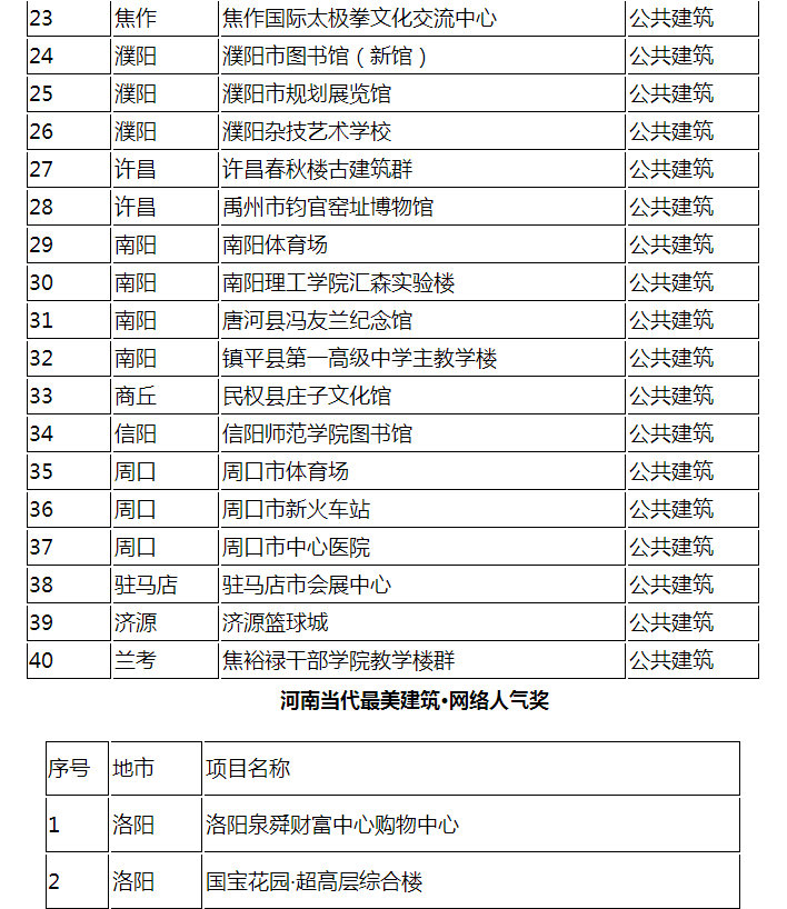 新华网郑州10月25日电(王克伟)10月25日,河南省住房和城乡建设厅等单位召开新闻发布会,宣布经过近五个月紧张有序的工作,“河南当代最美建筑”名单正式出炉,共有125个项目榜上有名。