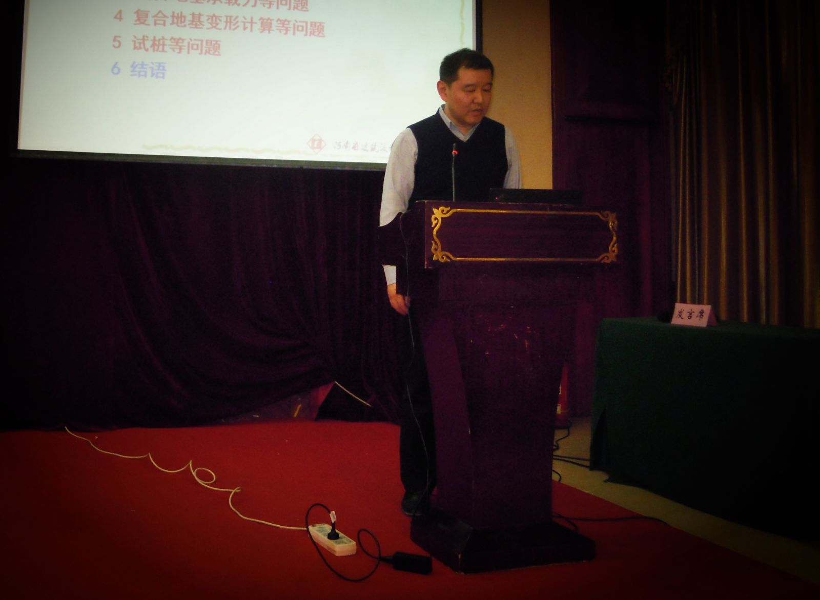 我协会建筑设计专业委员会主任蔡黎明做《CFG桩复合地基设计中常见问题分析》的报告