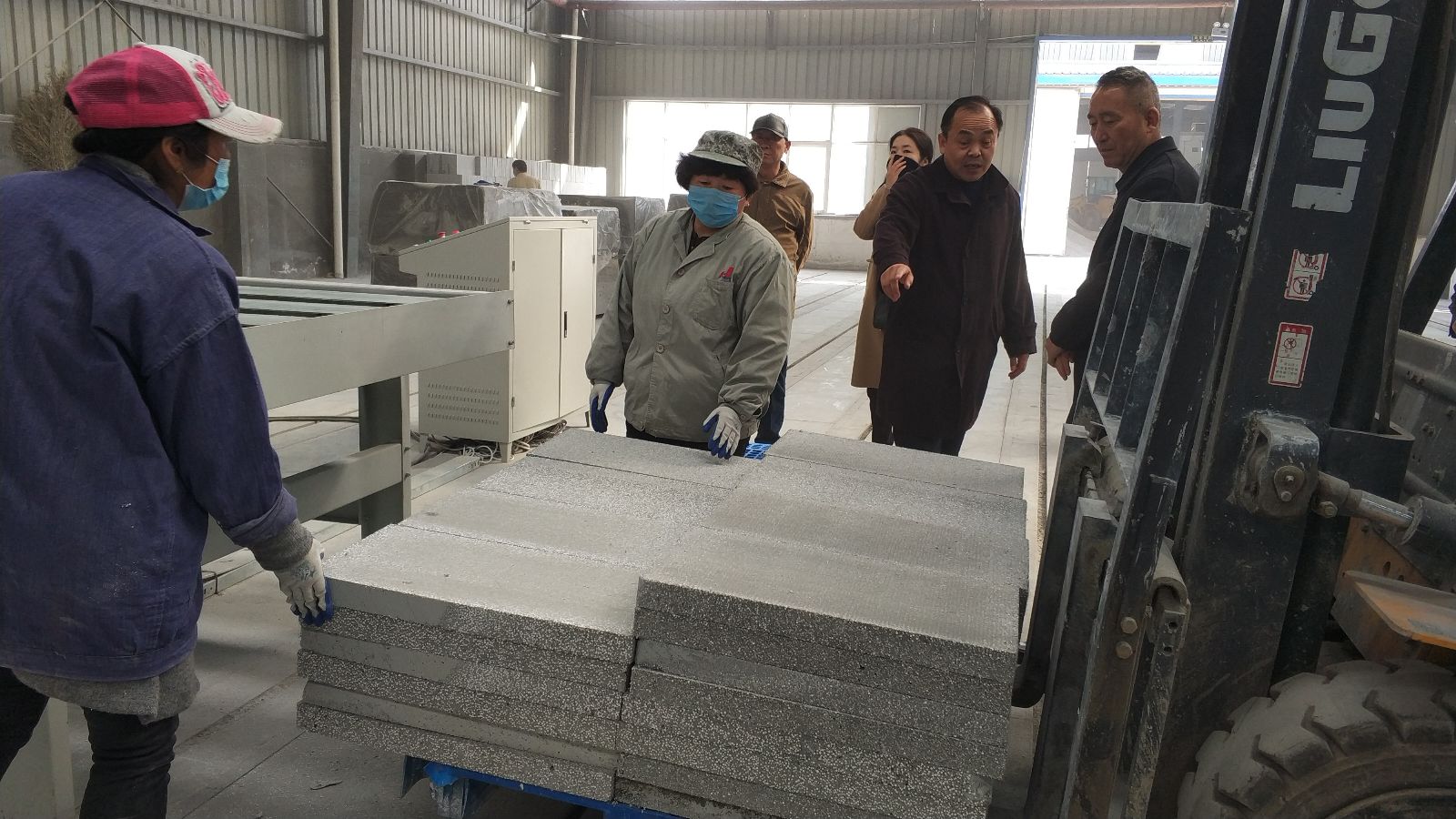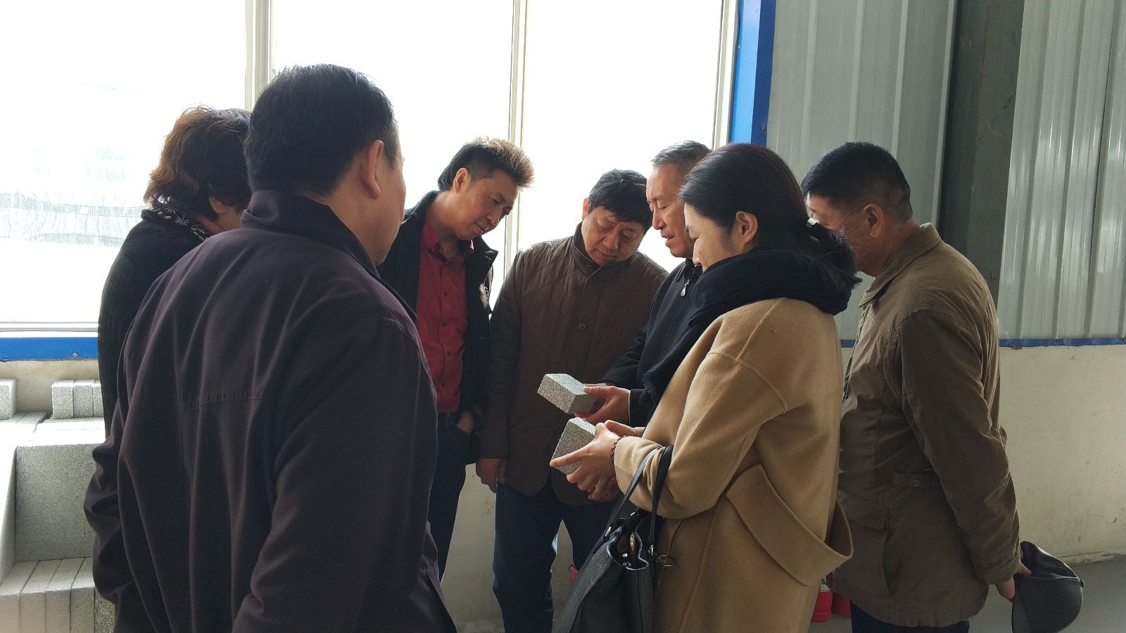 专家一行来到水泥基物理发泡保温材料生产基地进行现场调研。赵振波介绍了水泥基物理发泡保温材料的生产工艺、在物理发泡技术上的突破应用以及保温和防火等方面的技术优势。专家们仔细观看生产流程,比照国家建筑节能质量监督检验中心《检验报告》上的检测结果,观摩新技术,研讨新产品。