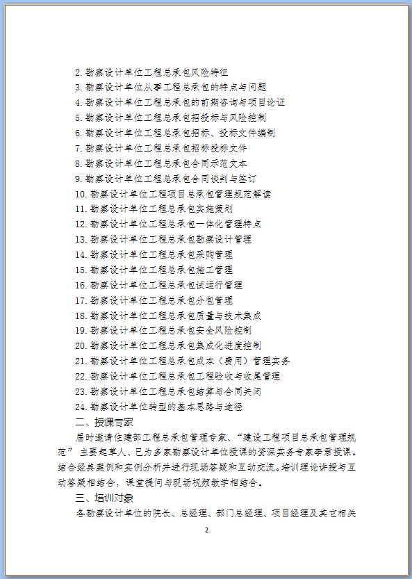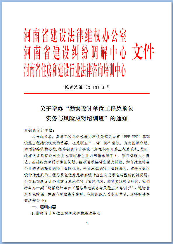 关于举办“勘察设计单位工程总承包实务与风险应对培训班”的通知