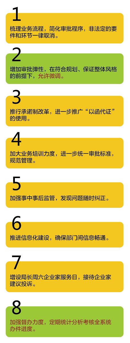 《安排》显示,天津规划局此次审批制度改革将主要包括八方面工作: