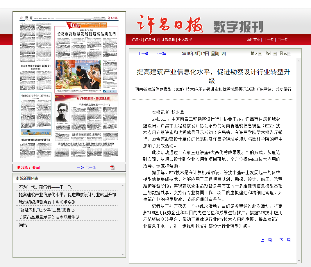 许昌日报消息:提高建筑产业信息化水平,促进勘察设计行业转型升级