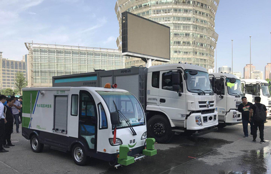 在博览会开幕式上,“中联环境、森源重工、郑州宇通、福建龙马、烟台海德、中通汽车、合加汽车、南通明诺、鞍山森远路桥、安徽华信、无锡金沙田、徐工集团、北京天路通”等参展企业还进行了电动吊桶压缩车、电动清扫车、无扫毛洗扫车、“纯电动”洗扫车、综合道路清扫机、多功能抑尘车等环卫专用车的性能演示,吸引众多观众围观。通过现场实地演示,展演结合让观众更直观的了解到各个车辆的性能和优势,这也使参展企业产品达到了良好的展示效果,成为博览会一大看点。