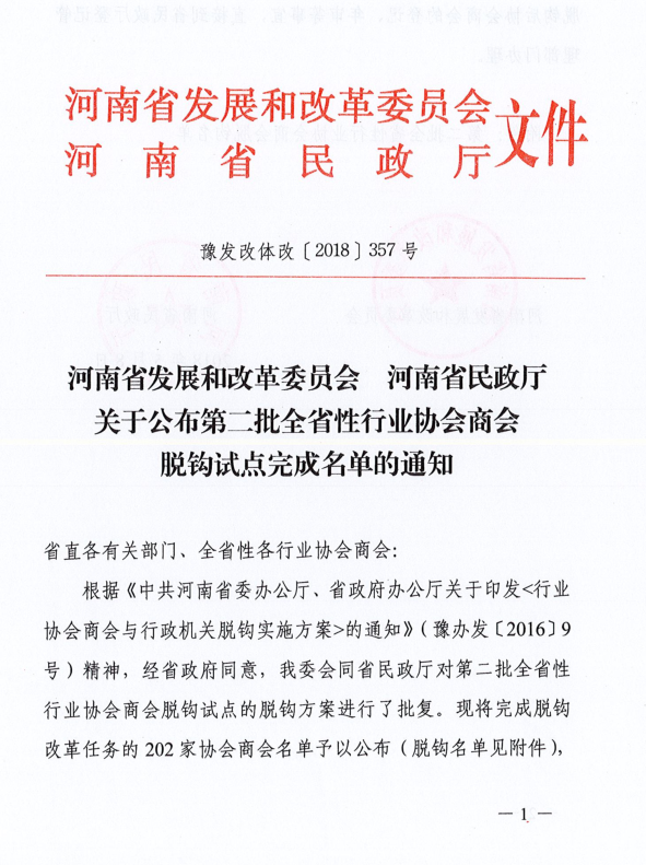 省发改委 省民政厅公布第二批全省性行业协会商会脱钩试点完成名单