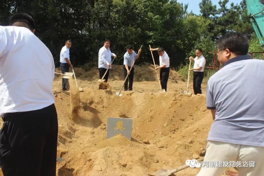 最后,参与捐款的爱心企业家们共同为红色主题公园项目奠基培土。