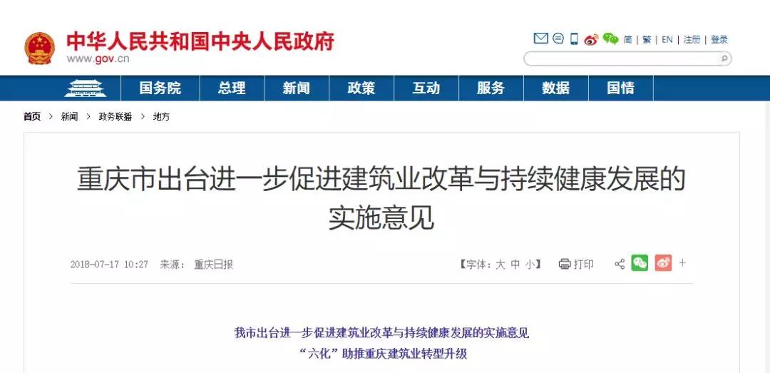 重庆市政府日前出台《关于进一步促进建筑业改革与持续健康发展的实施意见》(下称《意见》)提出,实施以大数据智能化为引领的创新驱动发展,加快建筑产业转型升级。