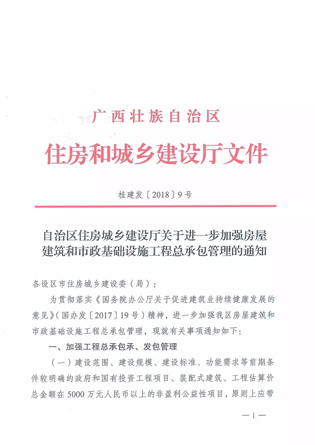 就在前天,7月31日,作为试点省份的广西再次发力,发布了《自治区住房城乡建设厅关于进一步加强房屋建筑和市政基础设施施工工程总承包管理的通知》(以下简称《通知》)。