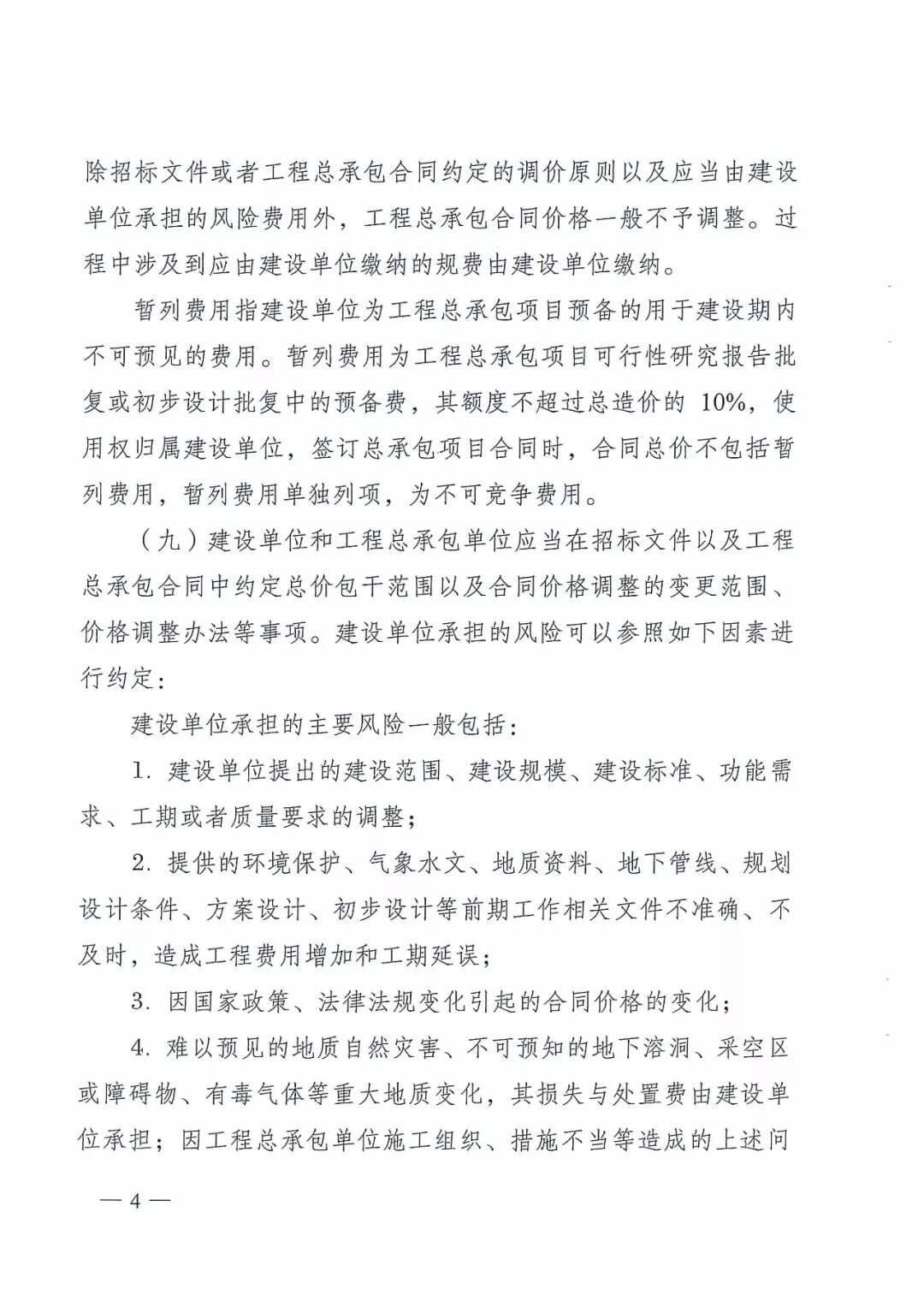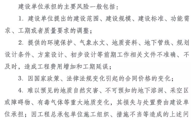总承包合同中约定总价包干范围以及合同价格调整的变更范围、价格调整办法等事项。《通知》列举了建设单位承担的风险因素。