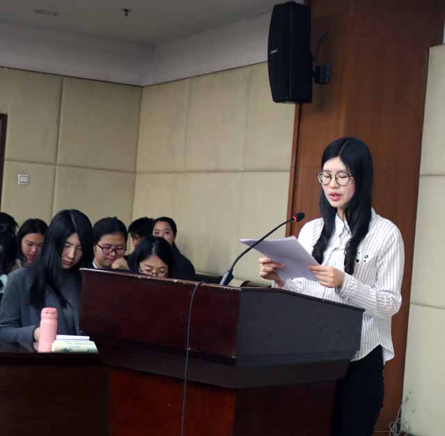 获奖学生代表在发言中表示,感谢学校对她生活和学习上的关心和帮助。她“不会辜负大家对我们的殷切期望,更加努力的学习,回报这个给我们关爱的社会,回报对我们寄以厚望的人们”。