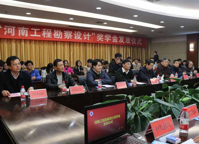 12月28日,郑州大学2017年“河南工程勘察设计”奖学金发放仪式在郑州大学主校区举行。省工程勘察设计行业协会副理事长兼秘书长张守礼和郑州大学对外联络办公室主任张书祥等主要负责人以及16家捐资企业代表、30名受资助学生参加了仪式