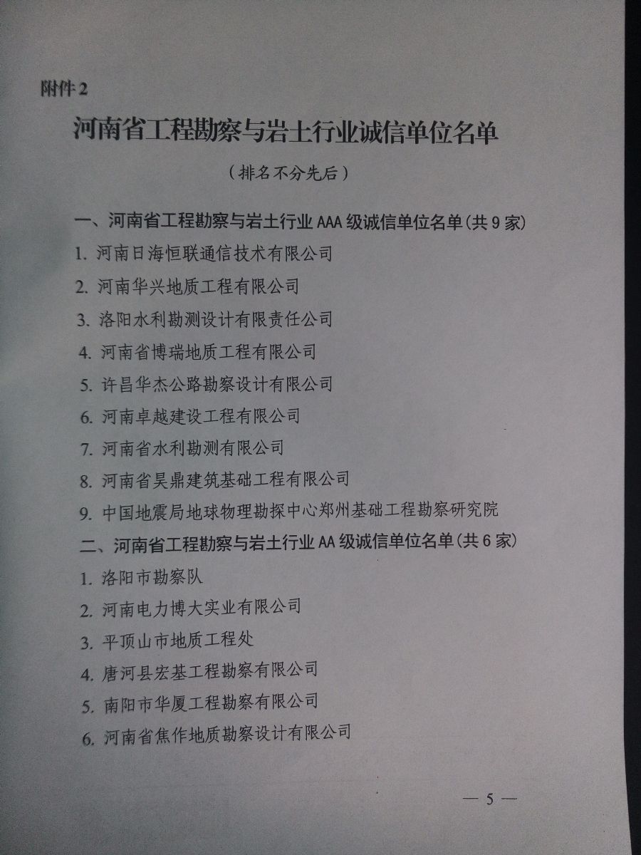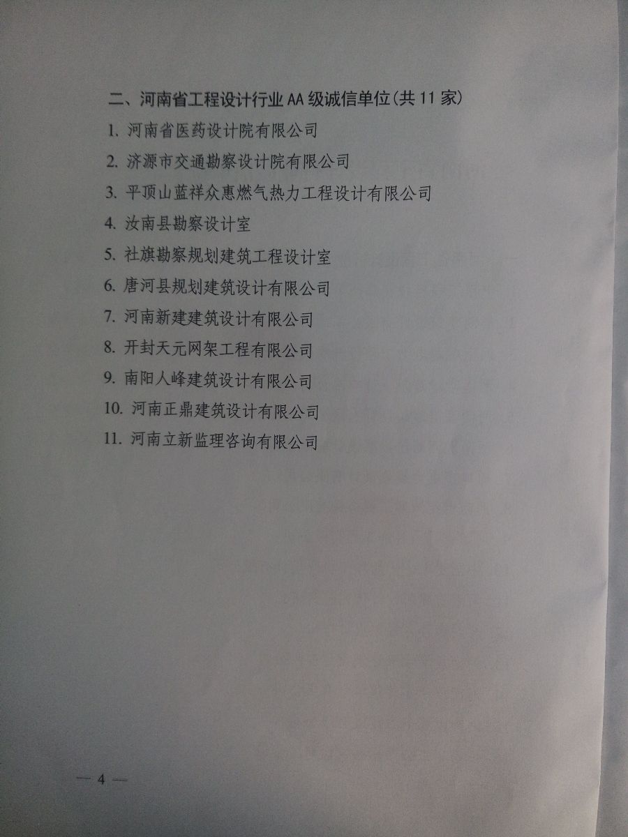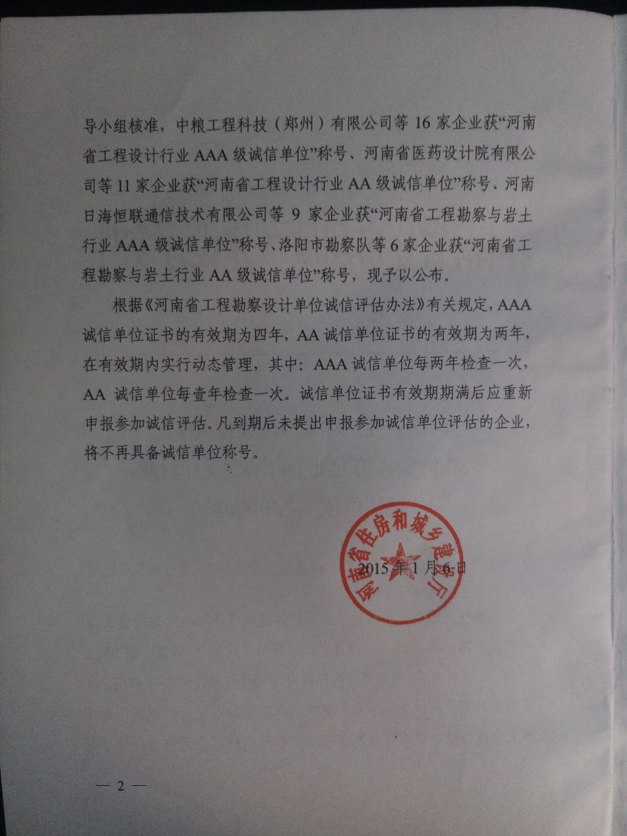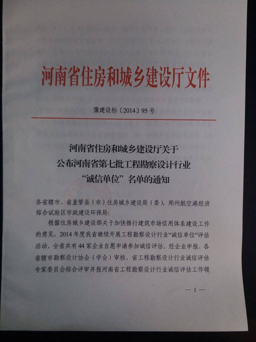河南省住房和城乡建设厅关于公布河南省第七批工程勘察设计行业“诚信评估”名单的通知