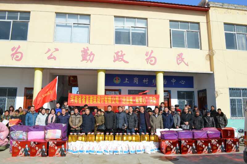2018年1月10日,河南省省直建筑设计有限公司组织慰问团,在总经理李建的带领下奔赴驻马店市上蔡县邵店镇上岗村。上岗村驻村第一书记刘书记和当地“两委”班子陪同慰问团对37户特困户进行了慰问。