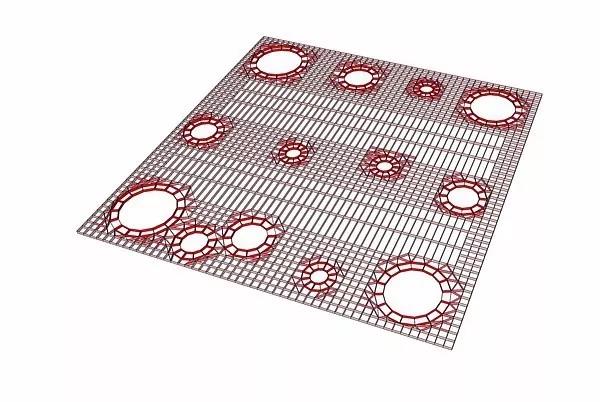 第一步,画好一个单元格,并在其中均匀的分布柱网,柱子变为管状,加上楼板,便成了精简版的仙台媒体中心。