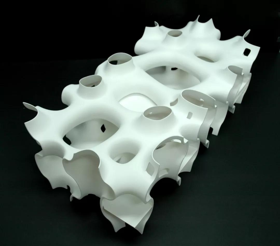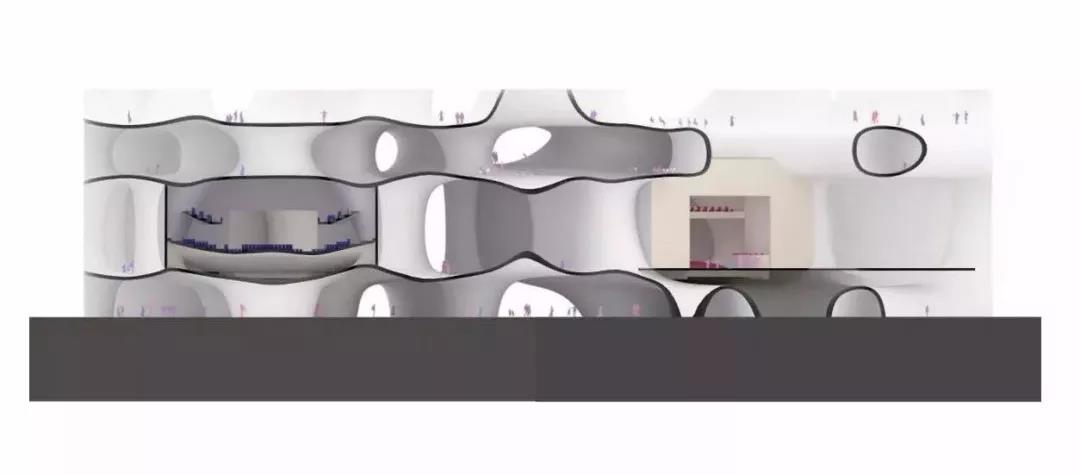 所以说,这个错位堆叠的管体系,就像是多孔的海绵结构,将传统的梁与柱,消解在连续的曲面之中。