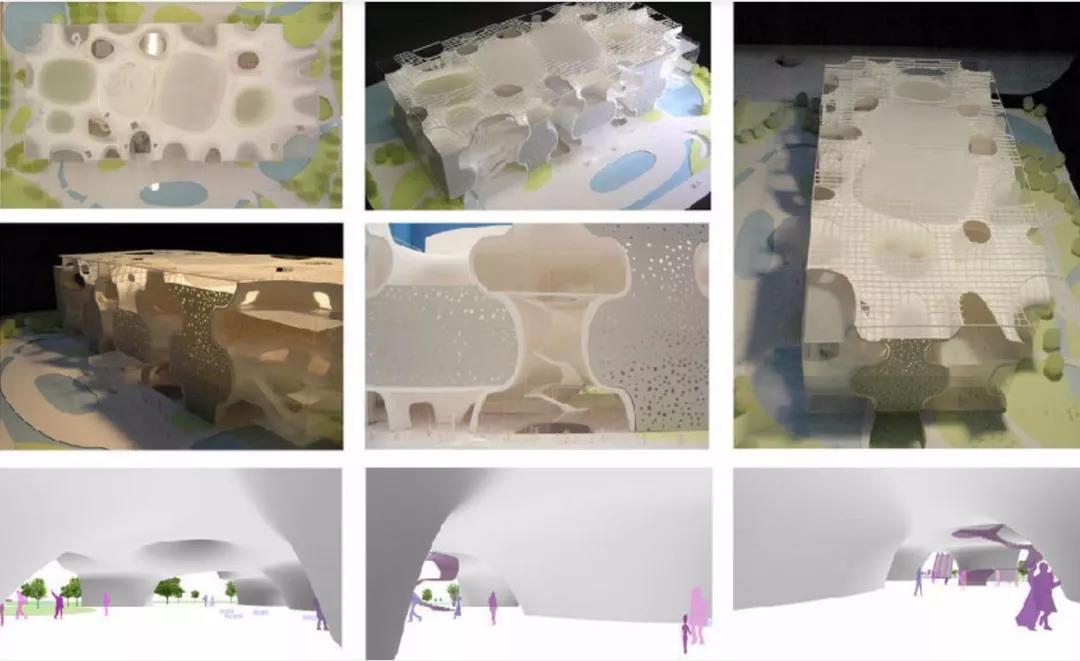 将若干个单元体系组合之后加以变化,就可以适应各种功能成为各种歌剧院或者图书馆。