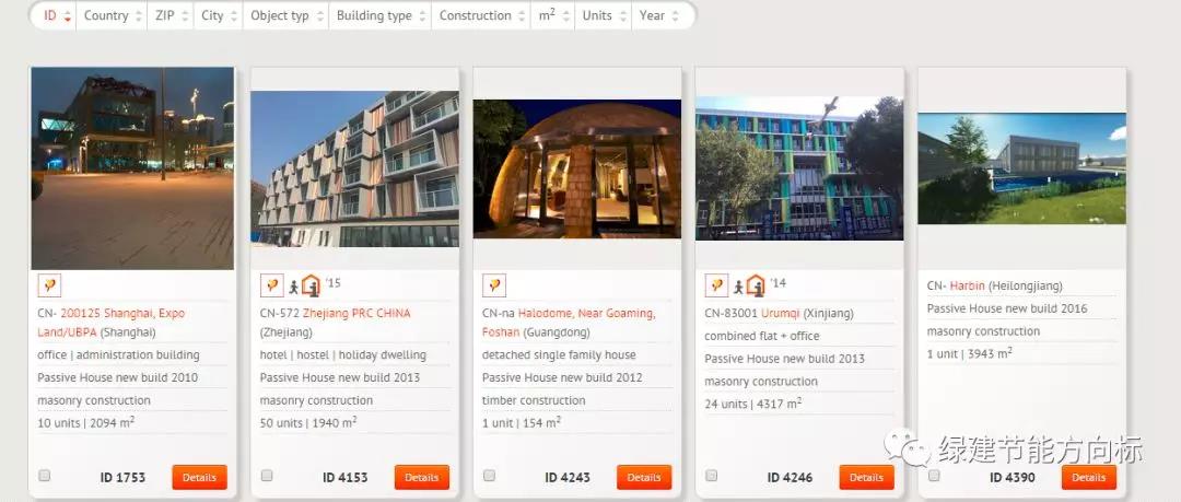 德国PHI官网上显示的中国认证成功的被动房,目前有16个项目,上海汉堡之家是第一栋,朗诗布鲁克被动式酒店是第二栋。怎么定的时间的排序?看上面的ID号就可以了。