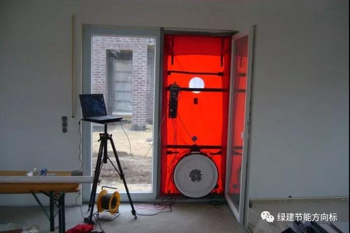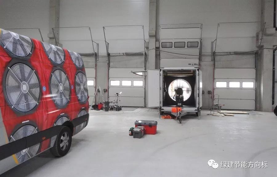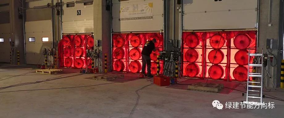 国外对于绿色建筑(DGNB)认证和被动房认证都是有一个建筑整体气密性检测来验收房子,如下图所示: