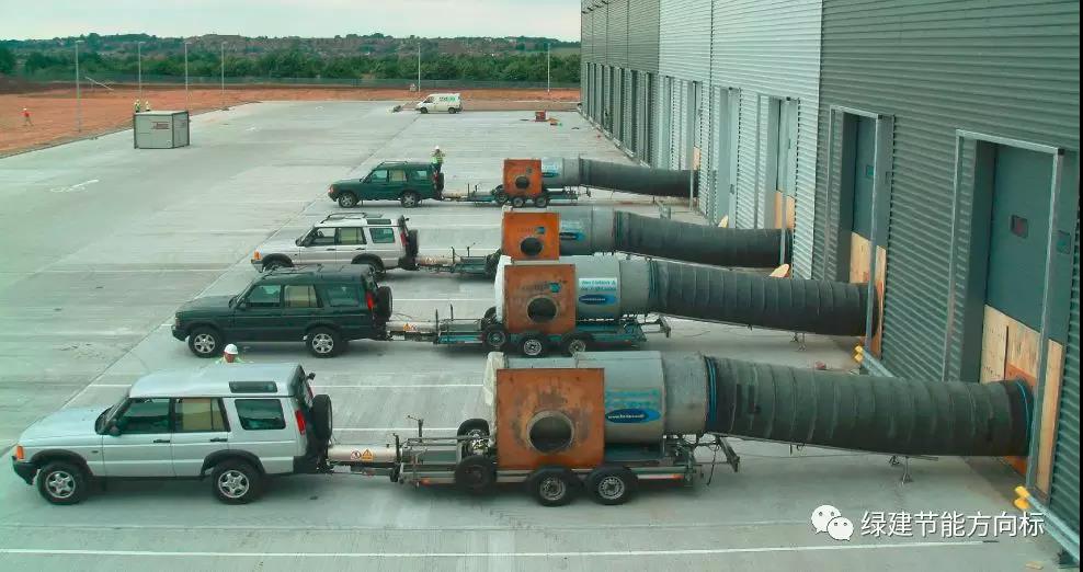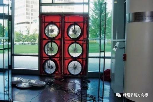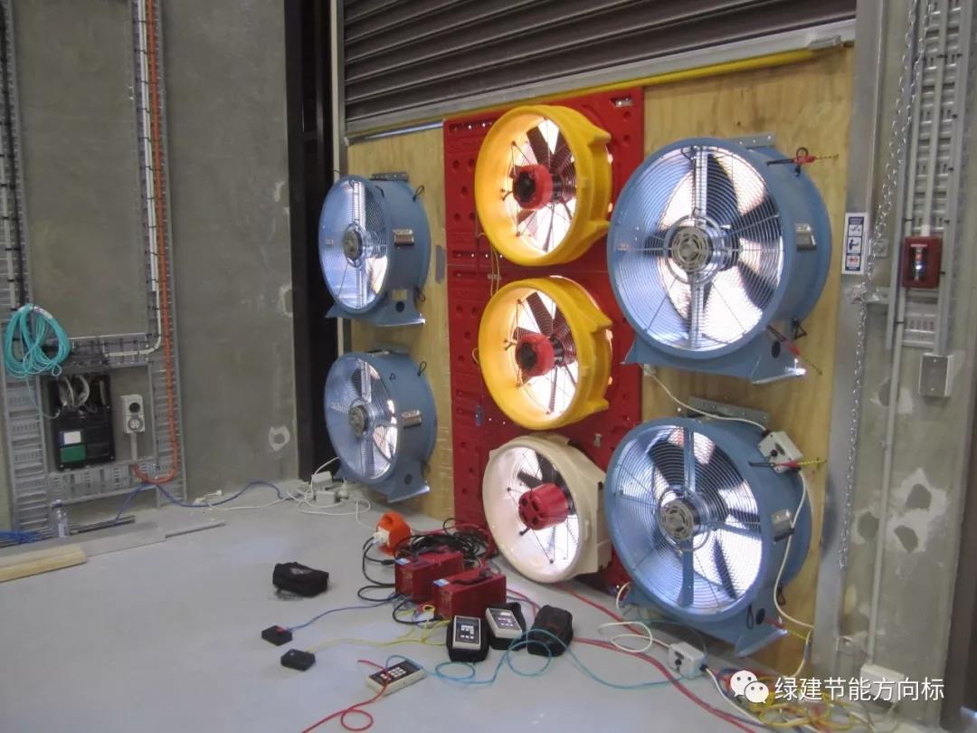 如果你们正在建设被动房,相信你们一定遇到检测这个难题。被动房气密性检测的标准是要实现室内外压差50Pa下的换气次数值做到0.6.对于一个小型建筑来讲,用一台风机可以轻松实现这个目标,但是中国的建筑物体积非常庞大,想达到预定室内外压差值,必须鼓更多的风量,也就是要配置更多的电风扇。按照经验,一台电风扇的风量在10000m3,左右,检测3000平米的建筑物没问题,超过这些数字,比如几万平米的建筑,那么就需要上更多的检测设备。这一块相信国人还不是很清楚。因为按照当前的一些被动房示范工程来看,多数以抽检某几个房屋合格为手段,很少有全部检测整栋大楼的案例。下面我们带来国外的一系列建筑整体气密性检测的案例,让大家开开眼,看看外国人是怎么看待检测这回事的!
