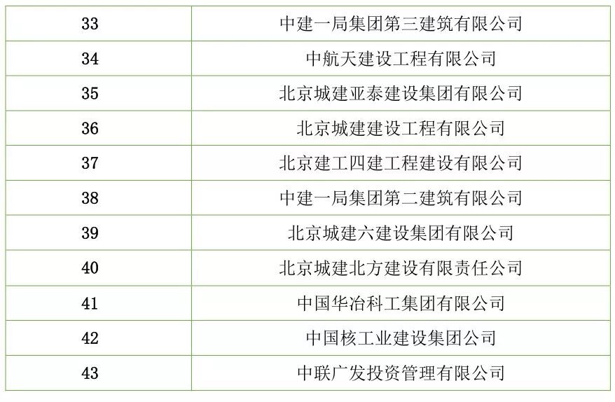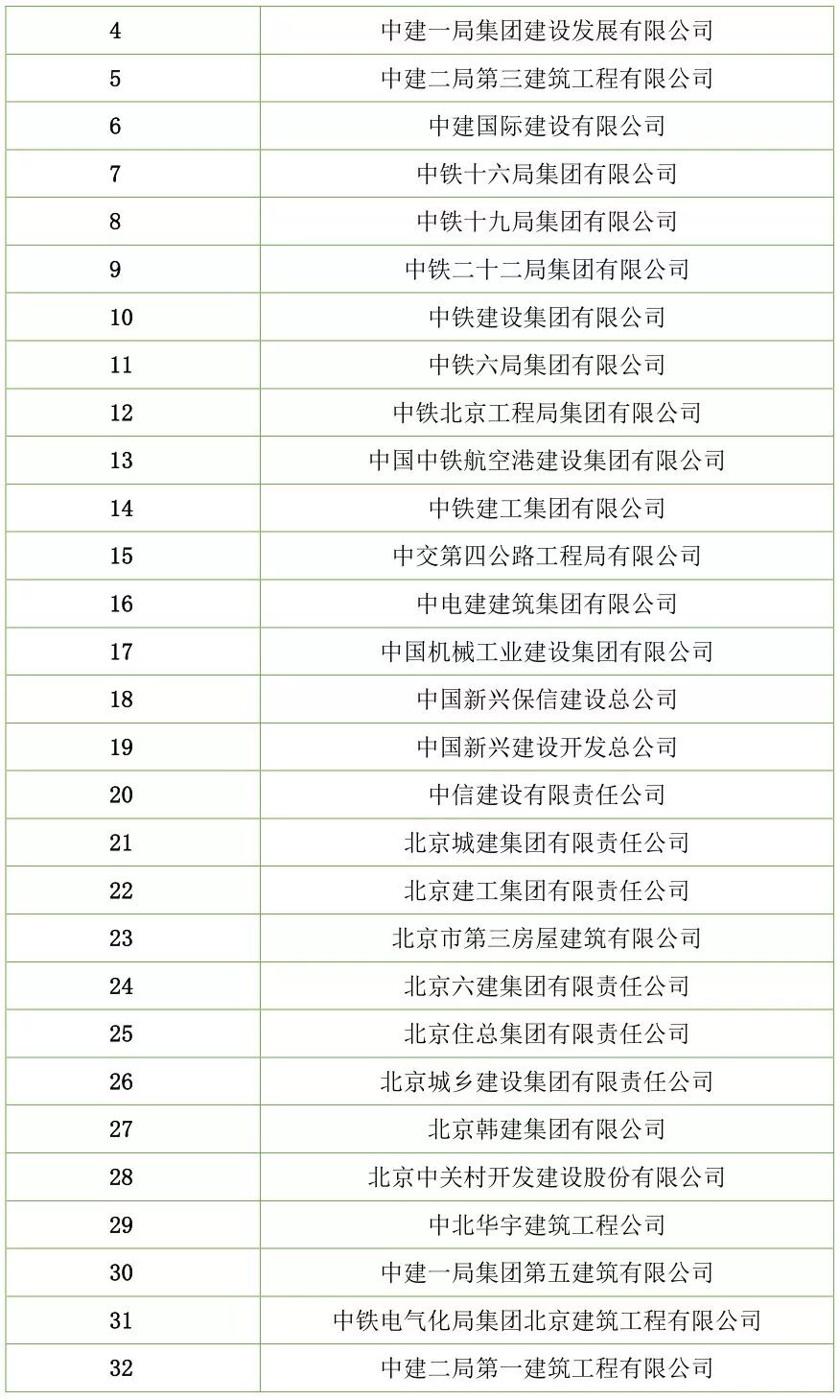 中建系统拥有的建筑工程总承包特级资质合计32项,具体企业名单如下: