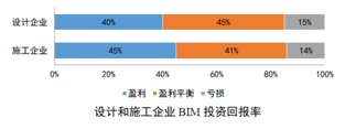 国内设计企业在应用BIM投资回报率(图3)中可以看到有40%盈利、45%盈利平衡,只有15%的设计企业属于亏损的。