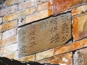 田下古城中张爵公祠外墙上的古砖记载着房屋名称和建造年代