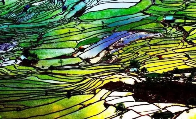哀牢山的地势险峻,山高谷深,海拔在3000米与600米间变化,形成了一个寒温带、亚热带和热带的立体气候。那片山高谷深,沟壑纵横,山地连绵,层峦叠嶂中藏着哈尼人的。哈尼人用顽强的毅力在这崇山峻岭中开凿出了世界闻名的、壮美的梯田。这片土地给了哈尼人物质所需的同时也给了我们一个美丽的艺术圣地。