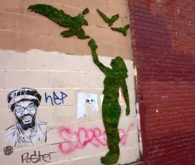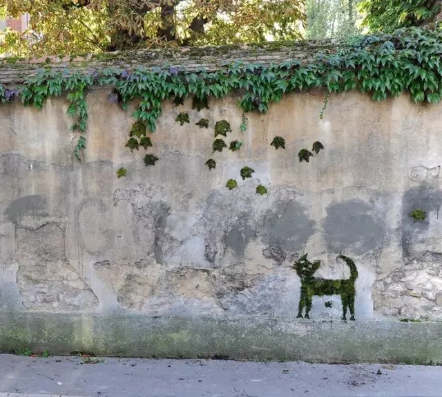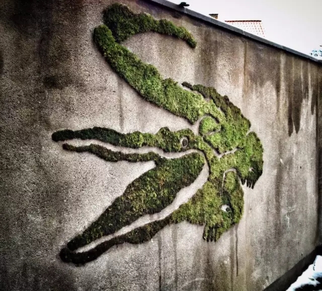 研究了3个月之后,Anna发明了一种苔藓涂鸦的技术,并将独特的“秘方”公布到网上。于是,雾都街头的墙壁上爬满了各种形状的苔藓,有鳄鱼、熊猫、猫头鹰……