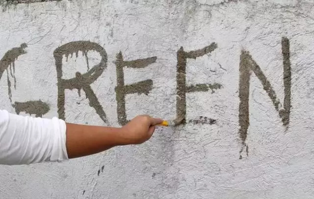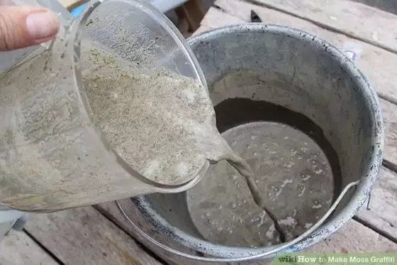 将做好的苔藓汁倒入桶内,就可以在墙上作画了。