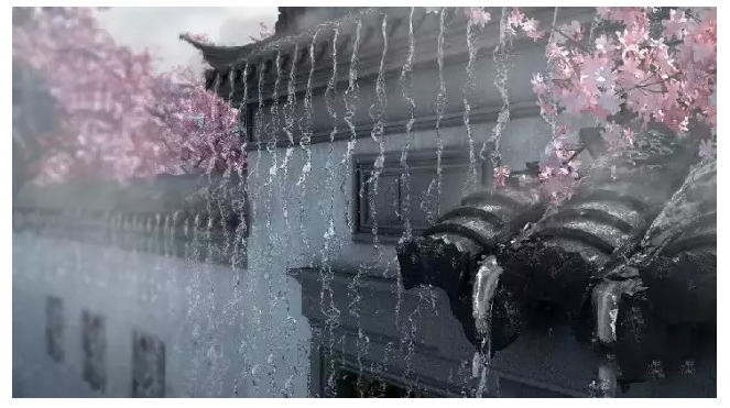 柳丝搭在玉阑干,帘外潇潇微雨、做轻寒。