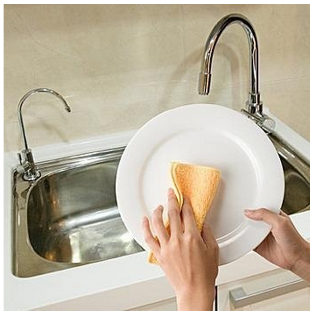清洁厨房水槽。往水槽中倒些水,在脏处撒些小苏打,用布擦拭,再往漏水孔撒些小苏打,倒一些白醋,当有泡沫产生时,在上面盖一张餐巾纸,20分钟后取下,清洗一下。最后,用肥皂水和浸泡过醋的抹布将水龙头冲干净,水槽就会洁净如新。