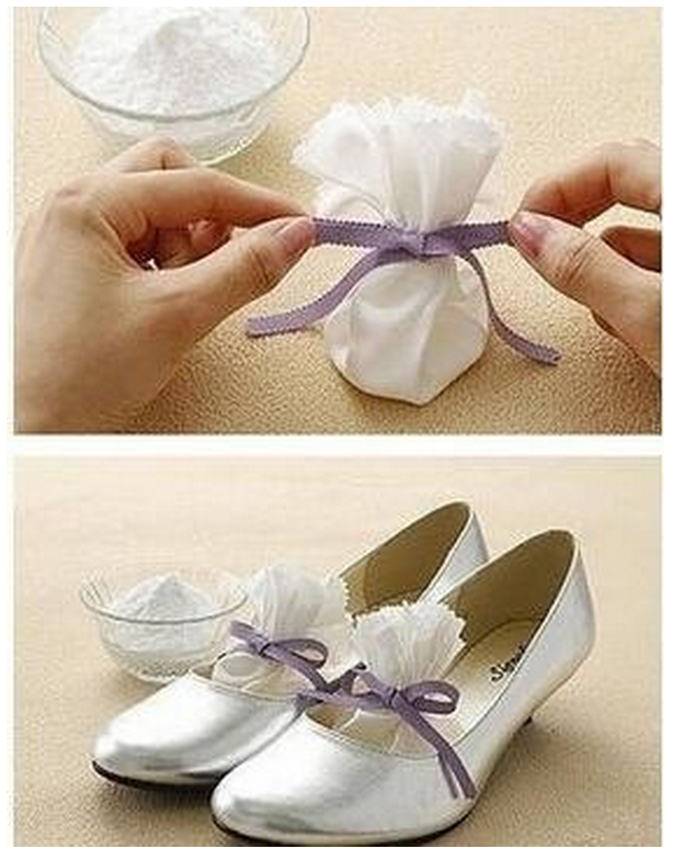 穿鞋防脚臭。穿鞋之前,先在鞋内洒些小苏打粉,不但可以避免脚臭的发生,而且将来洗鞋子时,其内部也更容易清洁。