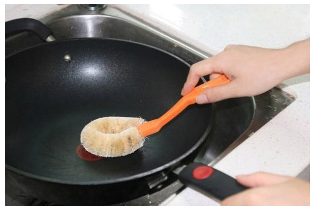 去除锅上焦痕。做完饭后,锅里粘了些又硬又干的食物残渣,很难洗掉,如果用钢丝清洁球擦的话,容易损伤锅底涂层。在锅里撒点小苏打,倒点热水浸泡一会儿,待食物残渣和油垢变松软后,轻轻一擦就能洗掉。