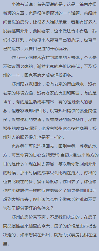 因为郑州房价高,你要回老家?