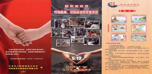 许昌市工程勘察设计协会党支部在“5.12”全国防灾减灾日到来前,组织许昌市勘察设计单位进行了深入持久的、全面的防震减灾科普知识宣传教育工作,切实把防震减灾宣传教育工作列入党支部重要议事日程。