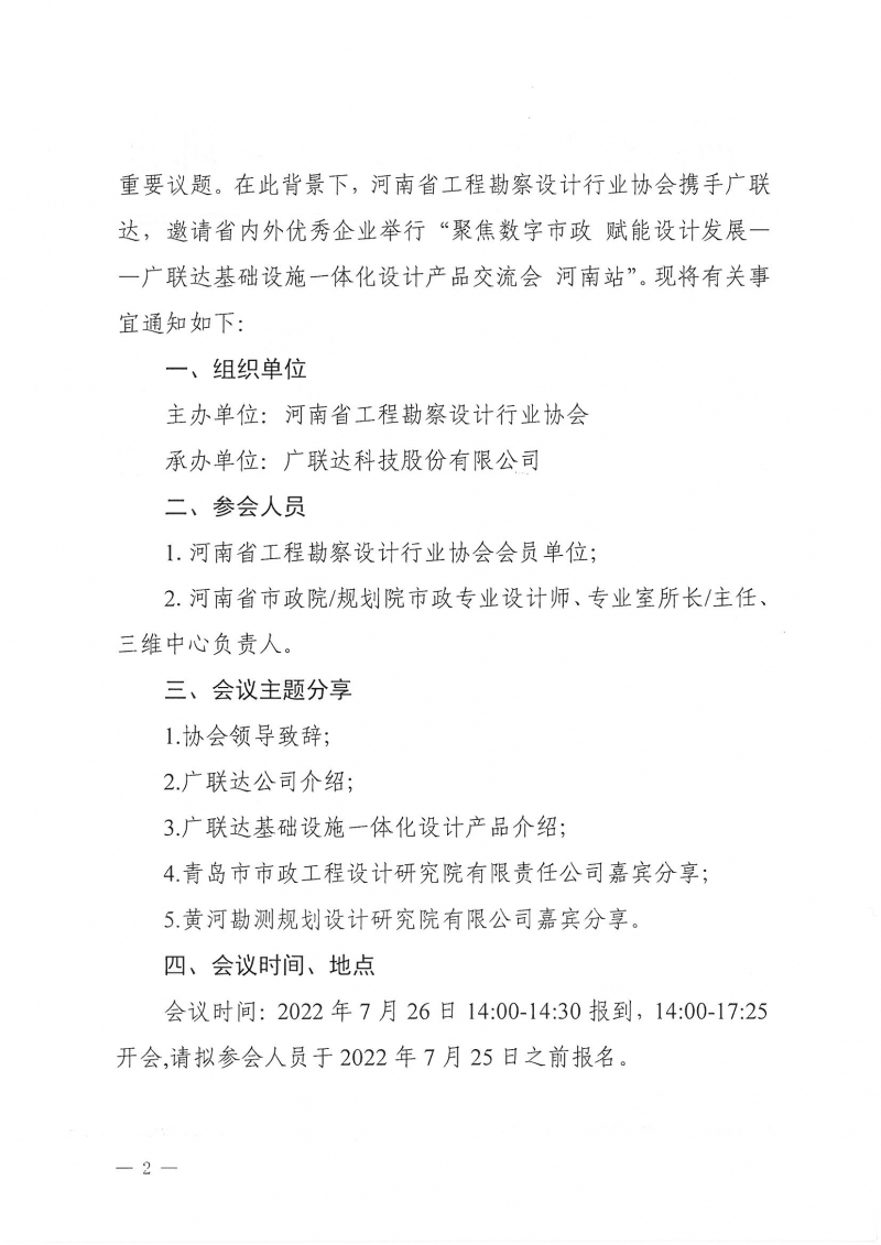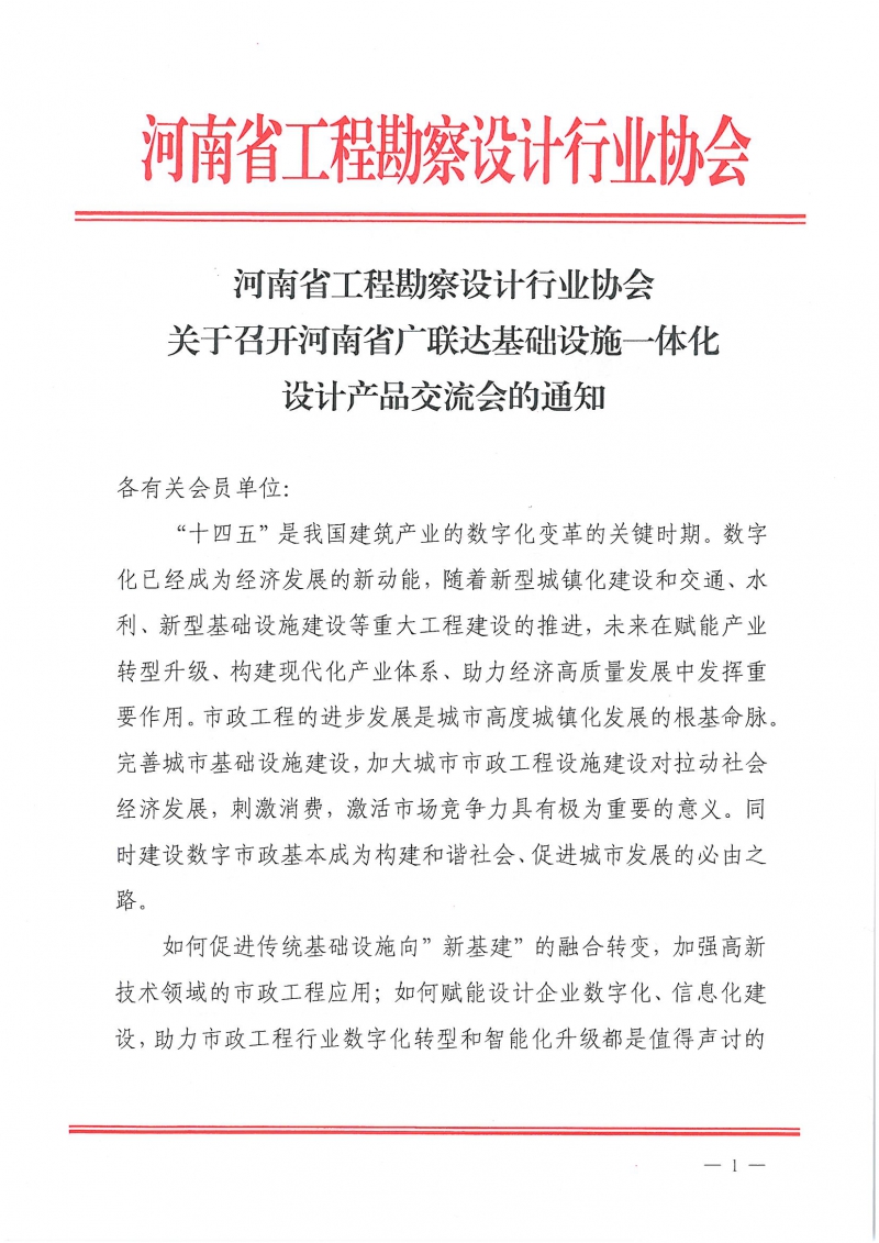 省协会关于召开河南省广联达基础设施一体化设计产品交流会的通知