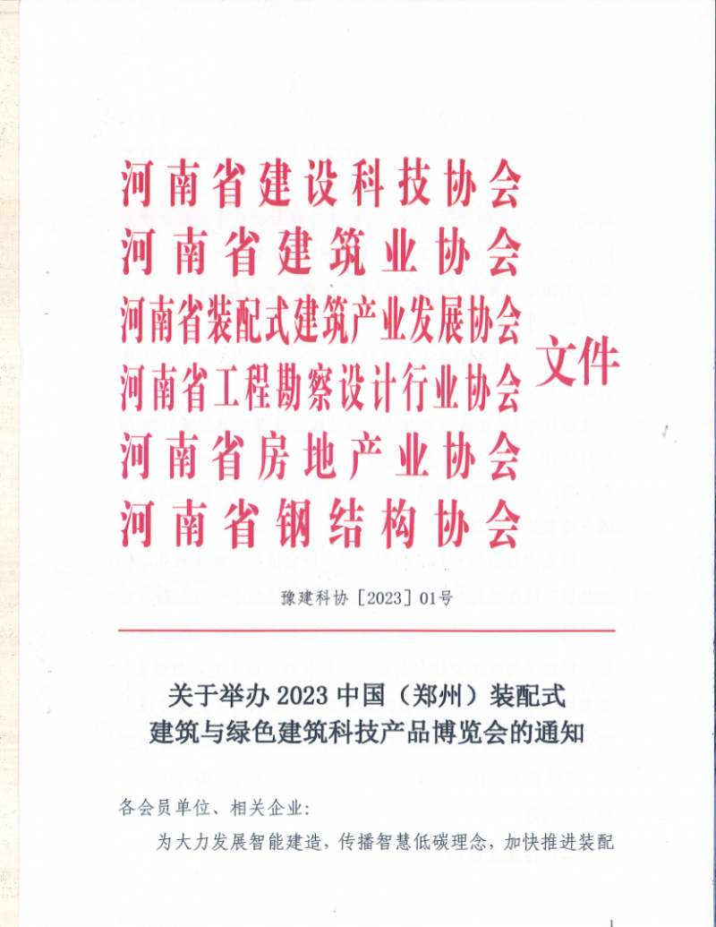 关于举办2023中国(郑州)装配式建筑与绿色建筑科技产品博览会的通知